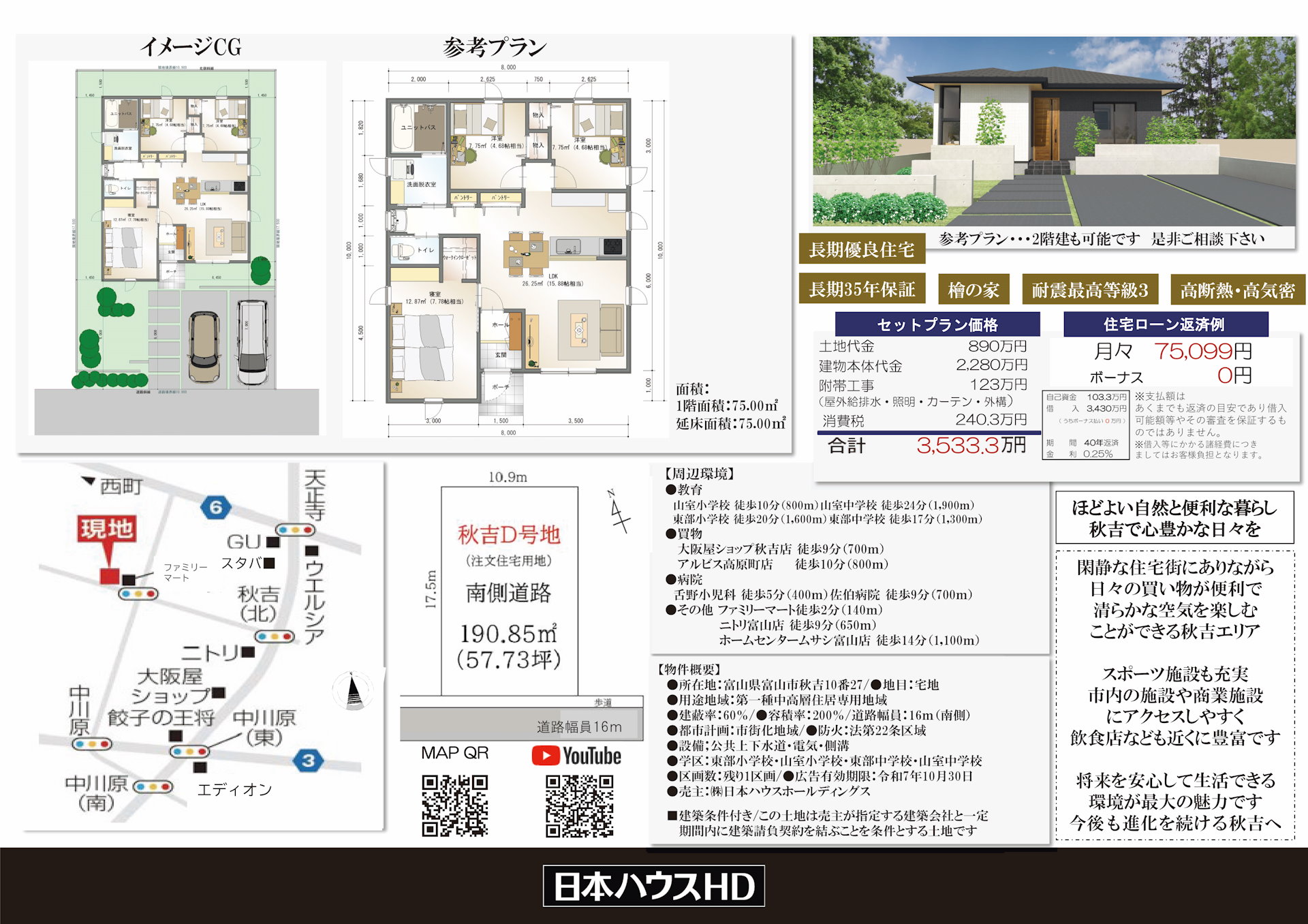 | 土地の所在地 | 富山県富山市秋吉102番地27 |