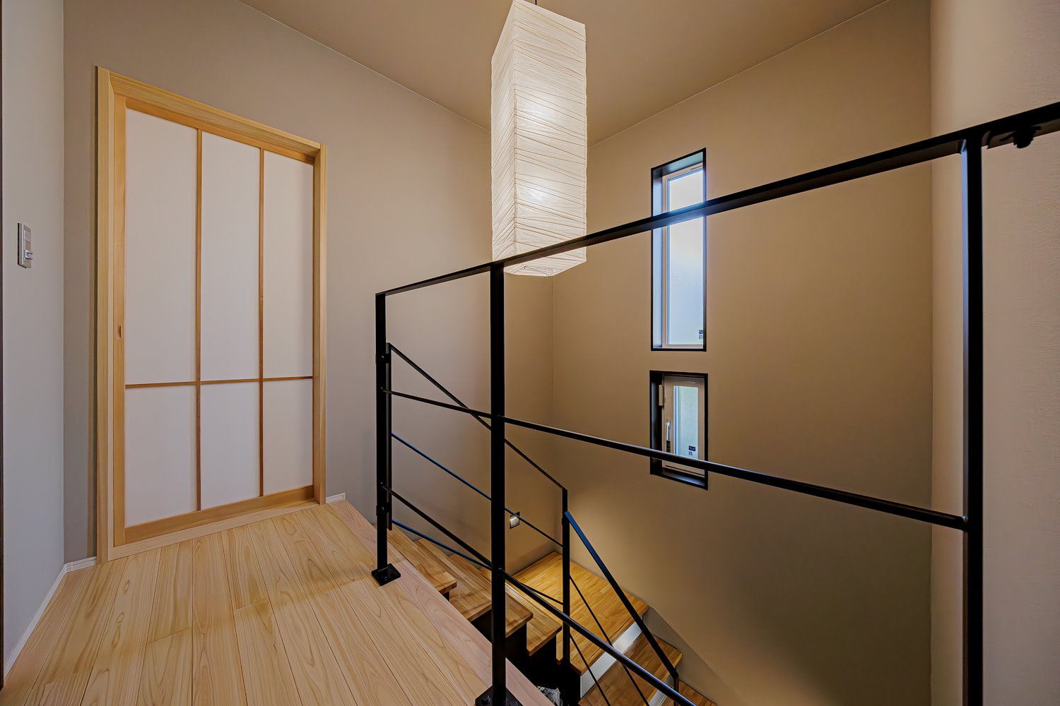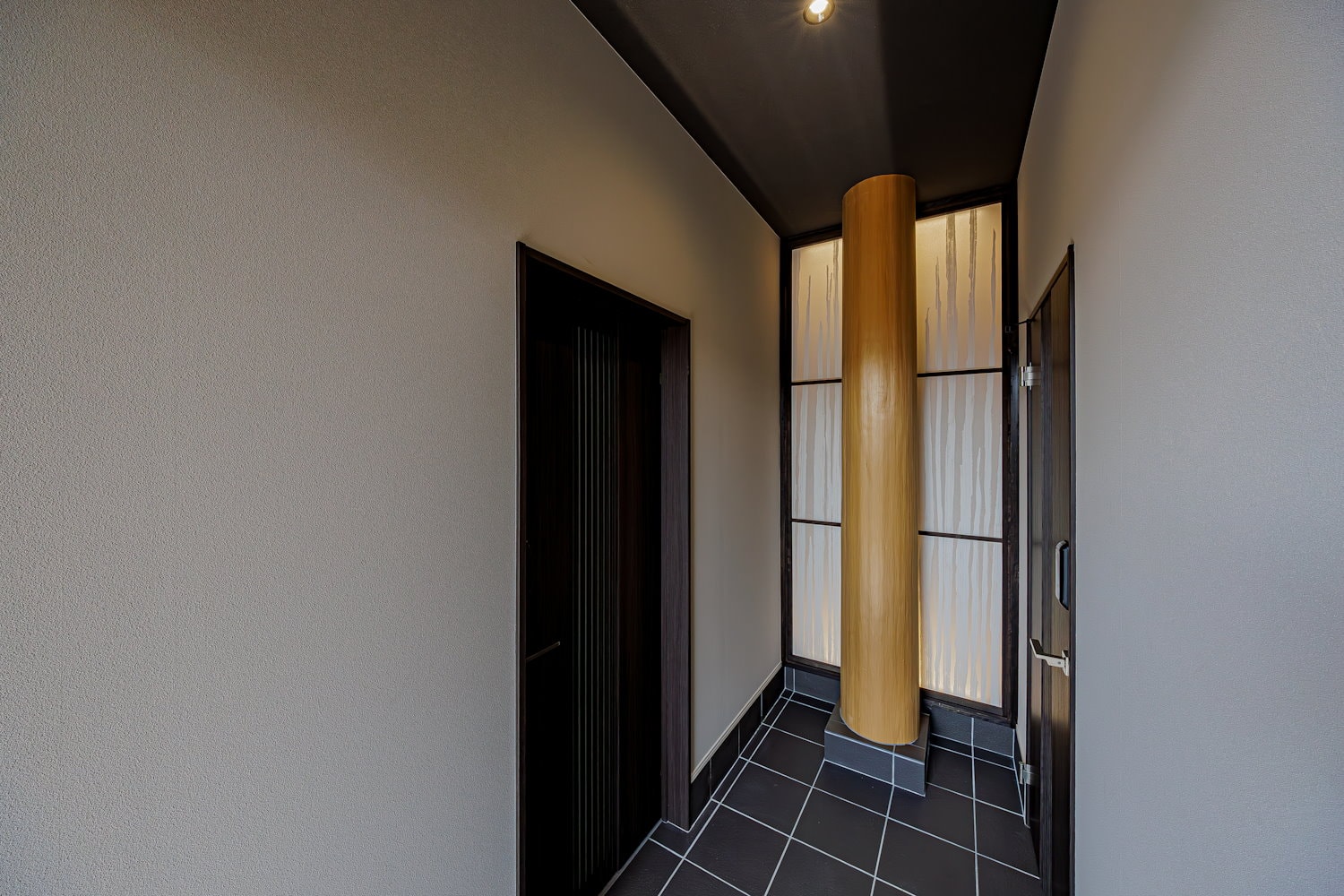 玄関を開けた瞬間に迎えてくれるのは、奈良から取り寄せた檜の大黒柱。2階リビングまで力強く貫く通し柱は、家全体を支えるとともに、豊かな香りで暮らしに安らぎを添えます。訪れる人を圧倒する存在感と、家族の想いを象徴する特別な空間を演出します。