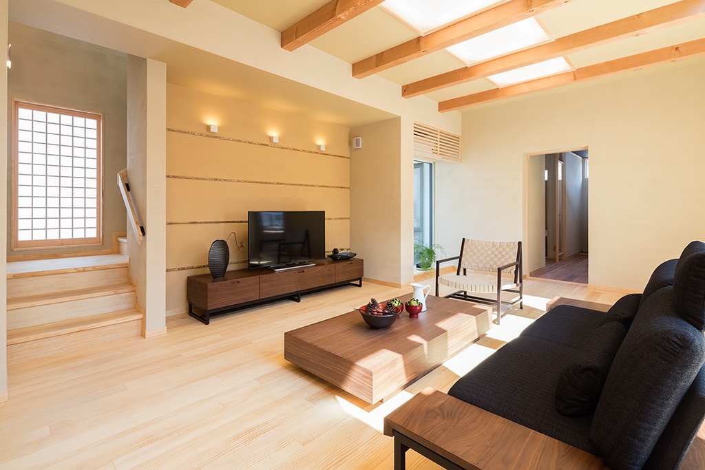 家族の絆と団らんを深める豊かな空間構成をネオジャパネクス・スタイルで彩りました。