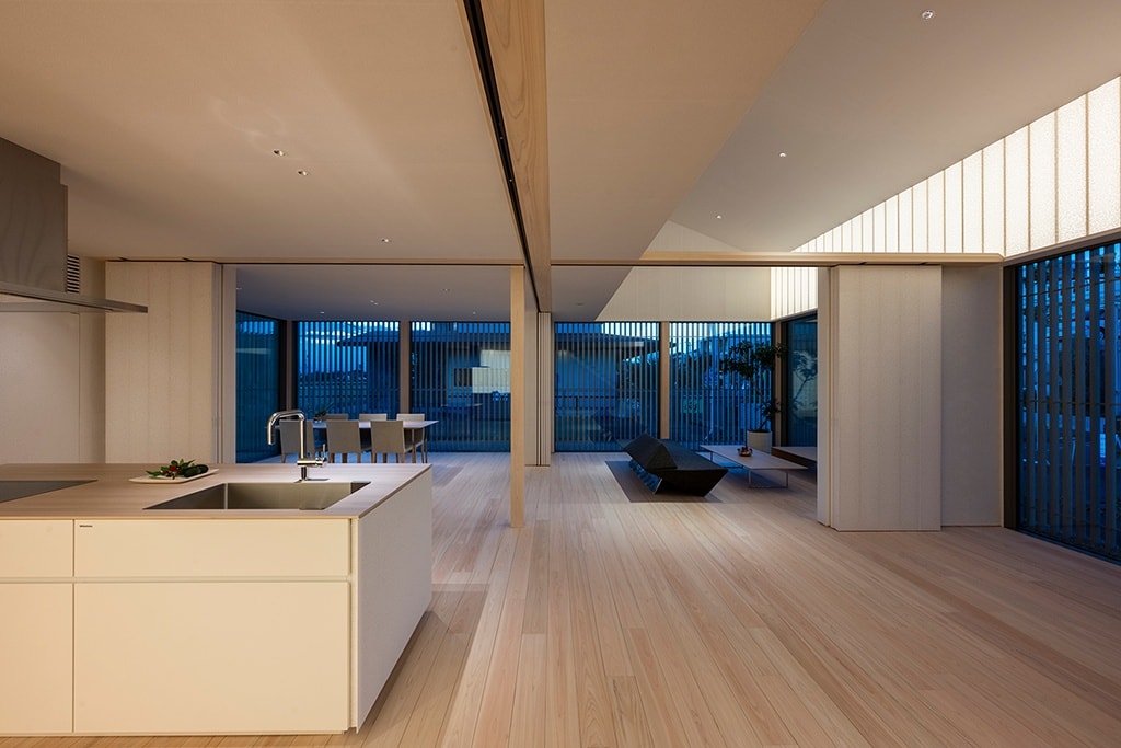 入母屋造りの重厚な平屋の下、徹底して快適な居住性を追求