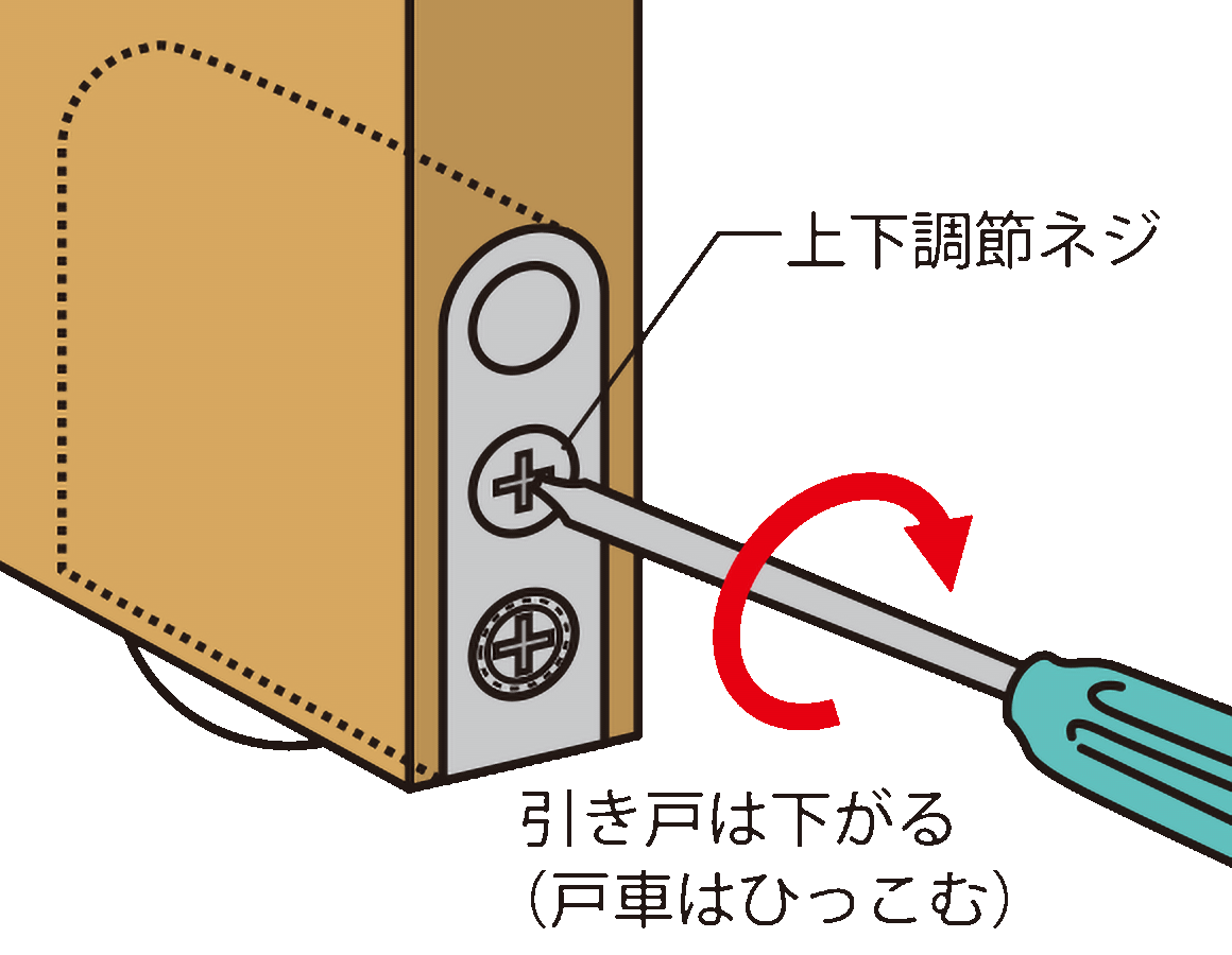 引き戸のロックがしっかりとかかるように下記の要領で調整してください。
