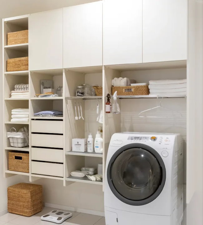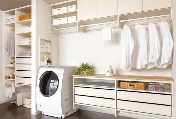 洗濯家事を効率良く行える機能的システム収納。